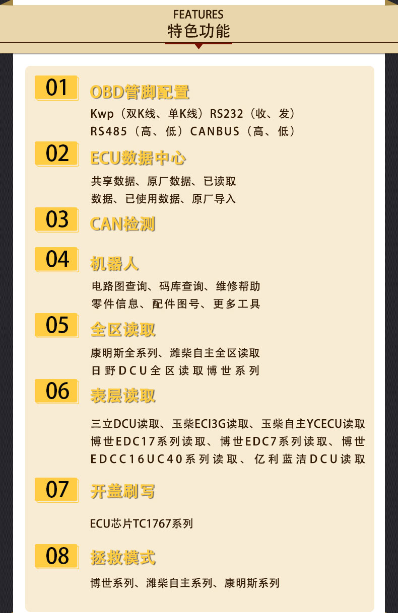 8、支持歐曼、陜汽、重汽CBCU數(shù)據(jù)底部刷寫,K值改寫等